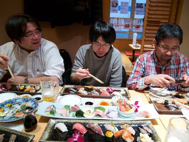 We had a year-end party! Mixture of Japanese (sushi, sashimi, yakitori) and pizza. Delicious!