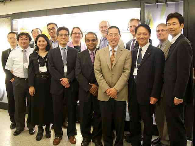 Kyocera and Inamori Professors gathered at MIT to present recent advances in ceramics. Prof. Yet-Ming Chiang (brown jacket), Mr. Onitsuka, and Prof. Yamazaki, in the order to the right.