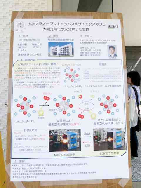As a part of Kyushu University Open Campus and JST Science Cafe, we demonstrated solar thermochemical water splitting at Inamori Frontier Research Center . It was successful, 80 participants, mainly high school students from all over Kyushu area!